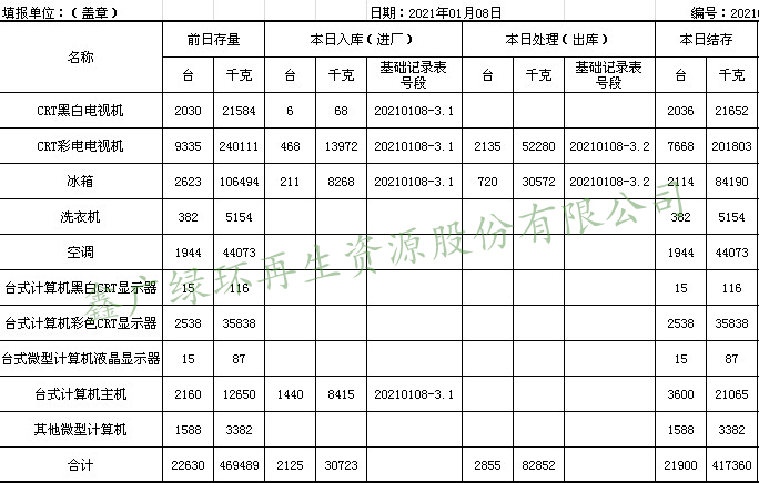 2021.01.08回收拆解統(tǒng)計(jì)表