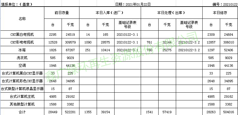 2021.01.22回收拆解統(tǒng)計(jì)表