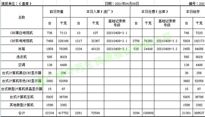 2021.04.09回收拆解統(tǒng)計表