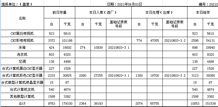 2021.06.03回收拆解統(tǒng)計(jì)表