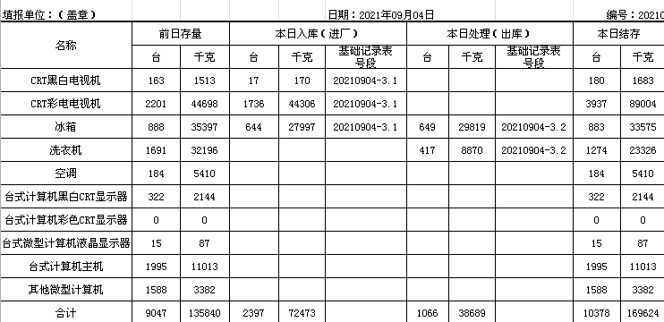 2021.09.04回收拆解統(tǒng)計表