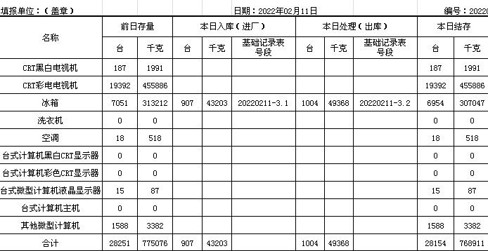 2022.02.11回收拆解統(tǒng)計(jì)表