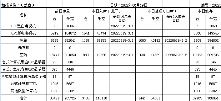 2022.06.19回收拆解統(tǒng)計(jì)表
