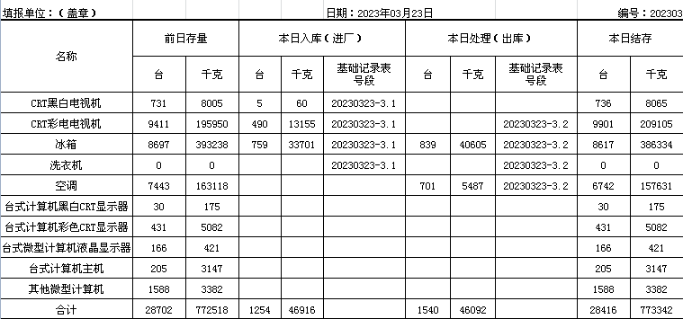 2023.03.23回收拆解統(tǒng)計(jì)表