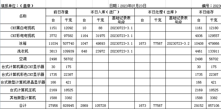 2023.07.23回收拆解統(tǒng)計(jì)表