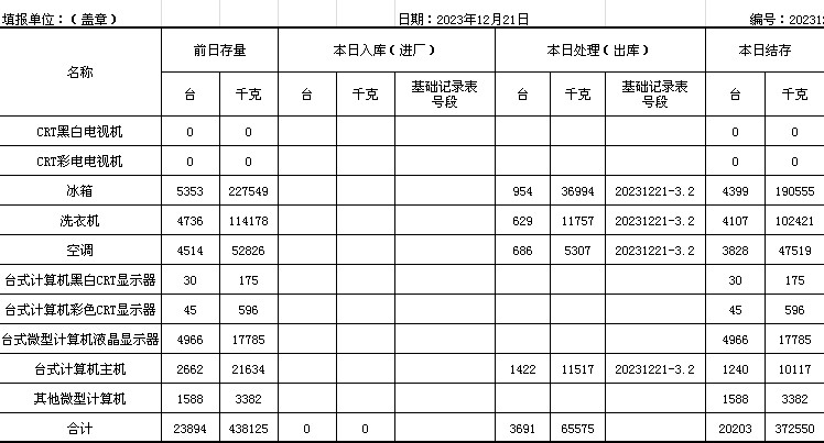 2023.12.21回收拆解統(tǒng)計(jì)表