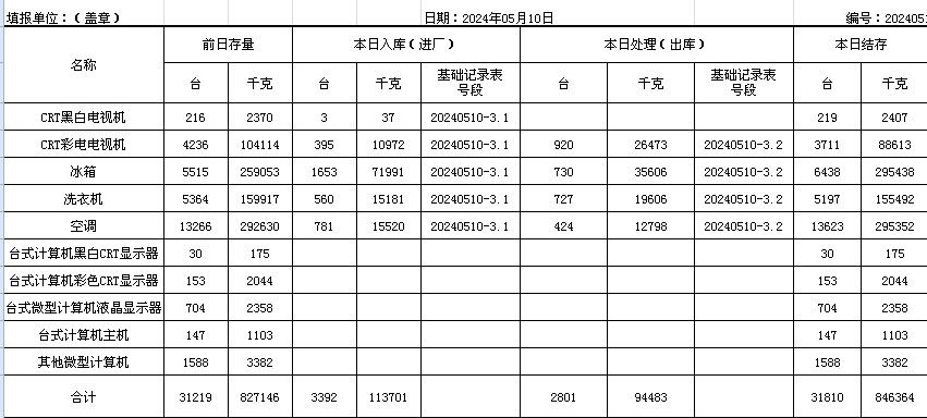 2024.05.10回收拆解統(tǒng)計(jì)表