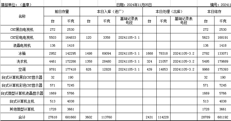2024.11.05回收拆解統(tǒng)計(jì)表