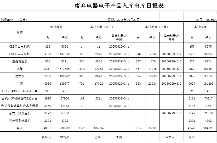 2025.09.29回收拆解統(tǒng)計(jì)表