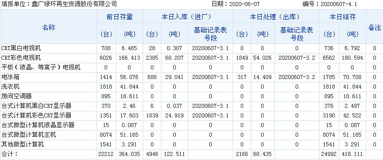 2020.06.06回收拆解統(tǒng)計表