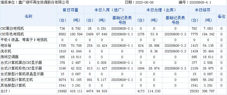 2020.06.08回收拆解統(tǒng)計表
