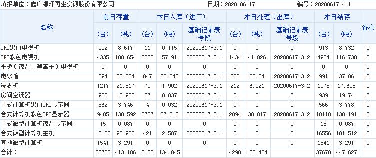 2020.06.17回收拆解統(tǒng)計(jì)表