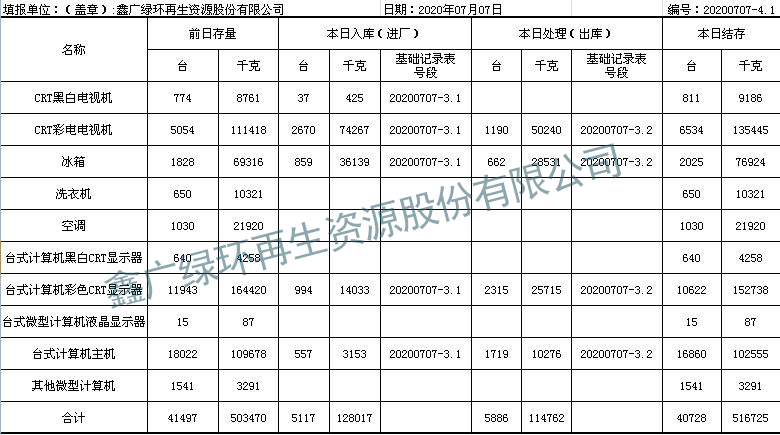 2020.07.07回收拆解統(tǒng)計(jì)表