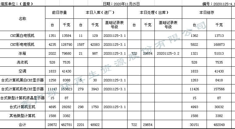 2020.11.25回收拆解統計表